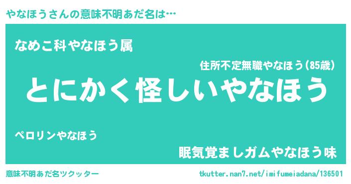 | 胡散臭い通販商品みたいなあだ名 | 『信頼と実績のサプリメント…その名も「やなほう」』 |