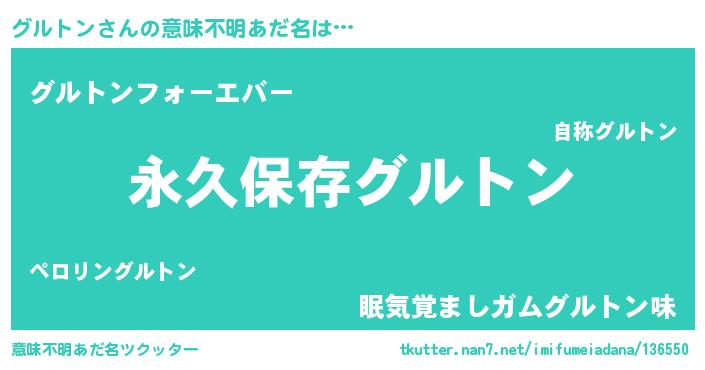 | 胡散臭い通販商品みたいなあだ名 | 『絶対に幸福をもたらす健康食品…その名も「グルトン」』 |