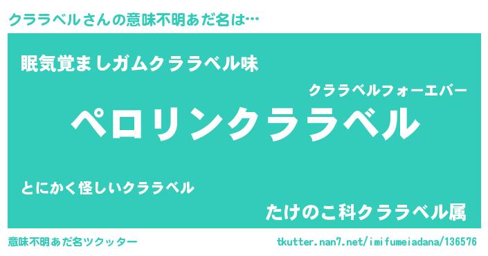 | 胡散臭い通販商品みたいなあだ名 | 『必ず成功する霊験あらたかなお札…その名も「クララベル」』 |