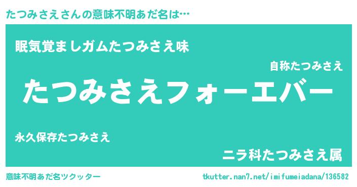 | ファンタジー風あだ名 | 『エターナルタツミサエー』『ゼタツトゥ』 |