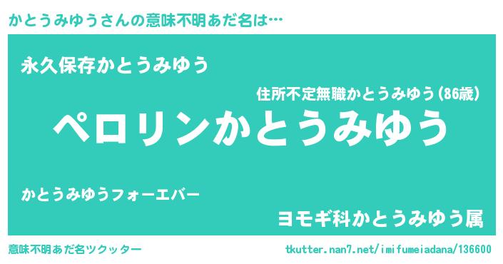 | ヘコむあだ名 | 『かとにー』『かとうみゆう(笑)』 |