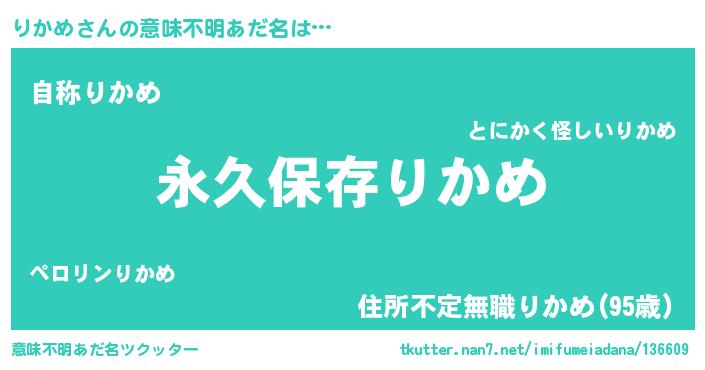 | 胡散臭い通販商品みたいなあだ名 | 『来世でも幸せになれる水素水…その名も「りかめ」』 |