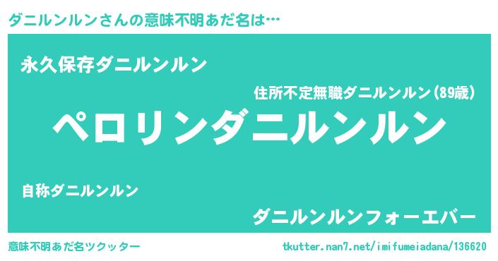 | ヘコむあだ名 | 『ダニふぇ~』『ダニルンルン(小並感)』 |