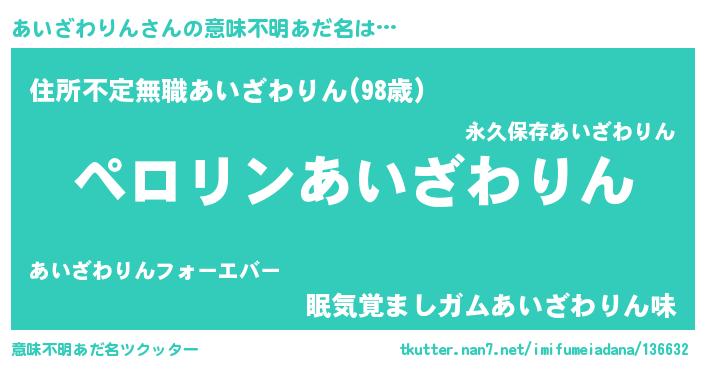 | 男性向けラノベタイトル風あだ名 | 『あいざわりんの憂鬱』 |