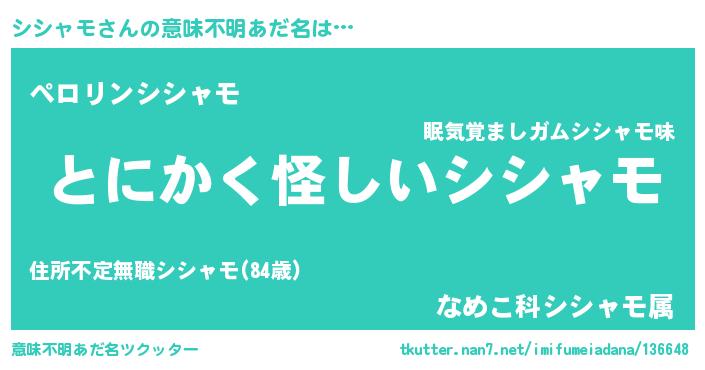 | ヘコむあだ名 | 『シシぷりん』『シシふぇ~』『豆乳』 |
