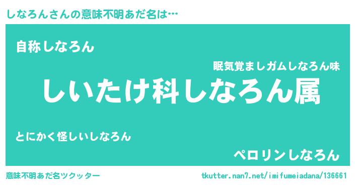 | 料理風あだ名 | 『しなろんごはん』 |