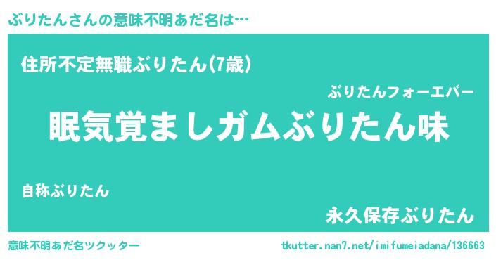 | ヘコむあだ名 | 『ぶりたん(苦笑)』『なまこ酢』 |