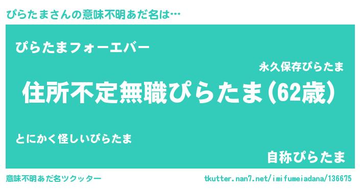 | 男性向けラノベタイトル風あだ名 | 『この素晴らしい世界にぴらたまを!』 |