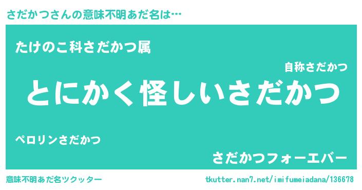 | 男性向けラノベタイトル風あだ名 | 『さだかつの嫁は女の子じゃないと思った?』 |