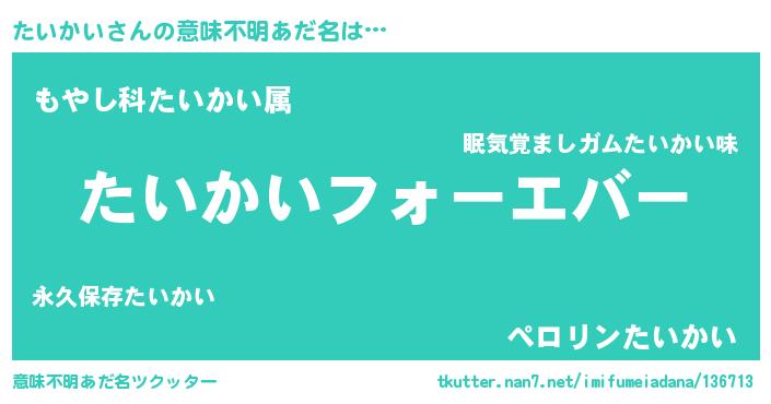| ポケモン風あだ名 | 『タイカダネ』『タイキング』 |