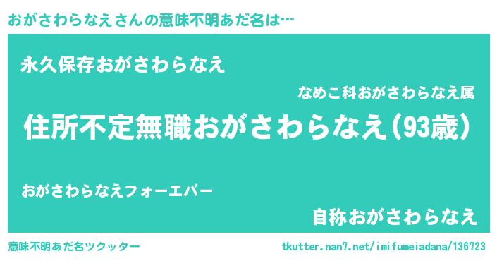 | 欧米人風あだ名 | 『おがさわらなえ・ステッグマイヤー』 |