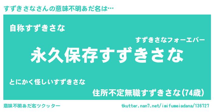 | 男性向けラノベタイトル風あだ名 | 『すずきさなという概念が存在しない退屈な世界 』 |