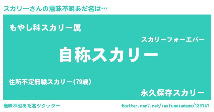 | 男性向けラノベタイトル風あだ名 | 『Re:スカリーから始める異世界生活』 |