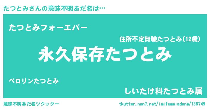 | ヒーロー風カッコイイあだ名 | 『ネオタツトミ』『ウルトラたつとみマン』 |