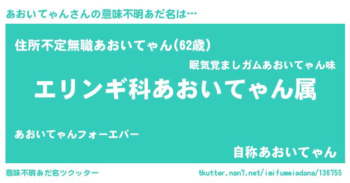 | ヒーロー風カッコイイあだ名 | 『仮面アオダー』『最強戦士アオイテャン』 |