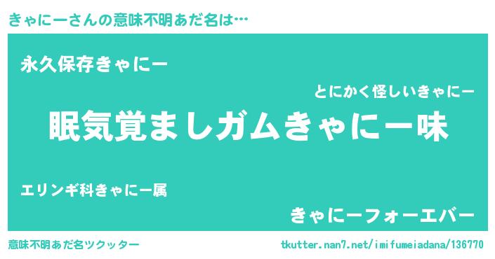 | ヒーロー風カッコイイあだ名 | 『正義の使者きゃにー』『ネオキャニー』 |
