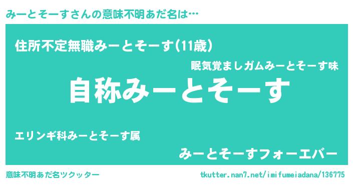 | 肩書あだ名 | 『みーとそーす総統』『みーとそーす教官』 |