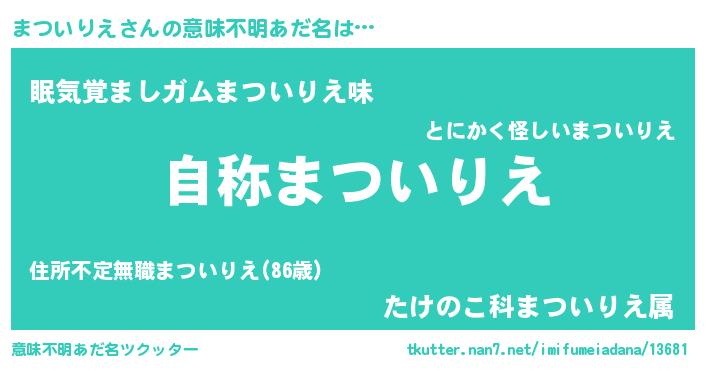 | 欧米人風あだ名 | 『まついりえ・ステッグマイヤー』 |