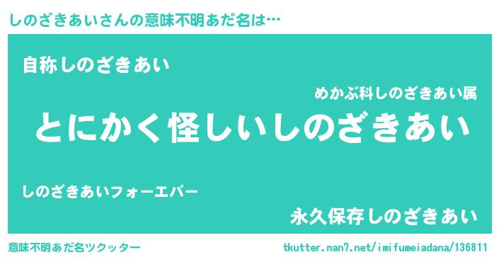 | ヒーロー風カッコイイあだ名 | 『暗黒騎士シノ』『最強戦士シノザキアイ』 |