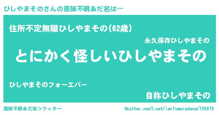 | 男性向けラノベタイトル風あだ名 | 『うちのひしやまそのが世界を掌握している!』 |