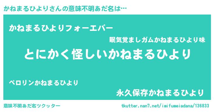 | ポケモン風あだ名 | 『ヒカネマルヒヨリ』『カネマダネ』 |