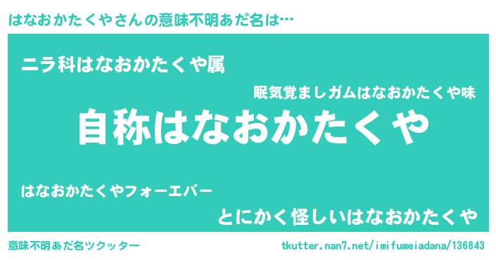 | 肩書あだ名 | 『はなおかたくや総統』 |