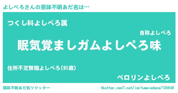 | 男性向けラノベタイトル風あだ名 | 『ノーゲーム・ノーヨシペロ』 |
