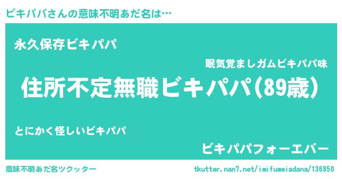 | 料理風あだ名 | 『ビキパパのカルパッチョ風』 |