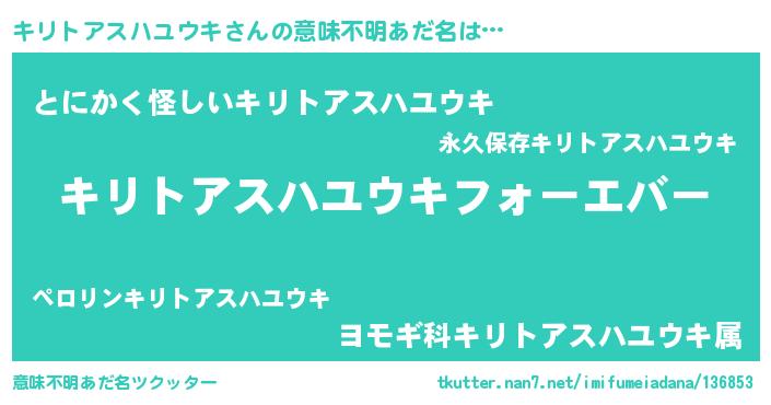 | 欧米人風あだ名 | 『キリトアスハユウキクリステル』 |