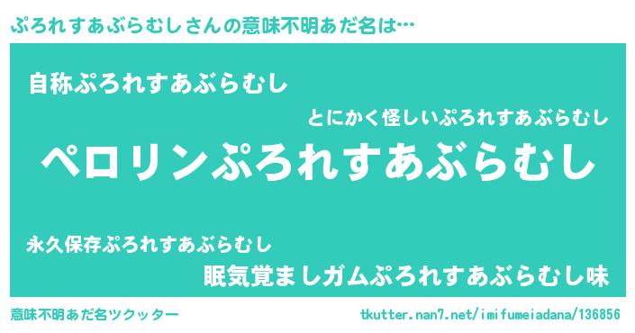 | 男性向けラノベタイトル風あだ名 | 『ぷろれすあぶらむしの憂鬱』 |