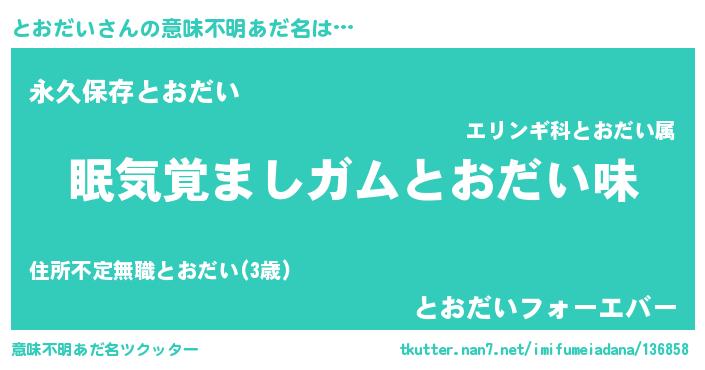 | ヒーロー風カッコイイあだ名 | 『正義の使者とおだい』『ネオトオダイ』 |