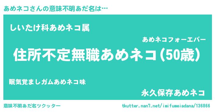 | 欧米人風あだ名 | 『ダレノガレあめネコ』 |