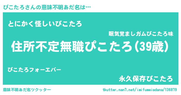 | 男性向けラノベタイトル風あだ名 | 『魔弾の王とぴこたろ』 |