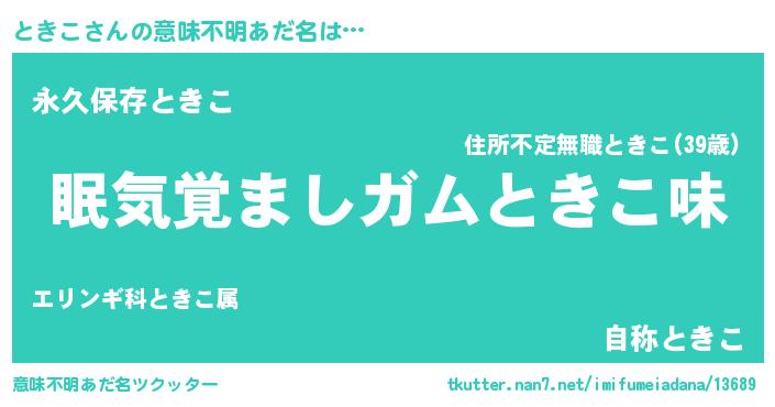 | ヘコむあだ名 | 『ときこ(爆)』『ときお』『酢こんぶ』 |