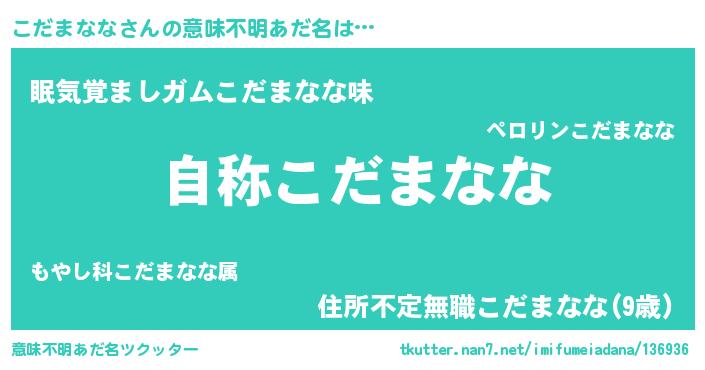 | 男性向けラノベタイトル風あだ名 | 『Re:こだまななから始める異世界生活』 |
