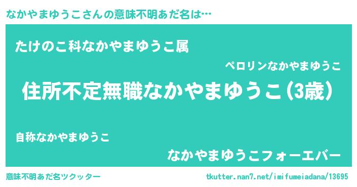 | 男性向けラノベタイトル風あだ名 | 『魔弾の王となかやまゆうこ』 |