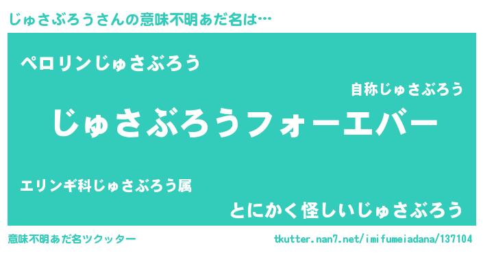 | 女子向けラノベタイトル風あだ名 | 『じゅさぶろうの雑貨屋さん』 |