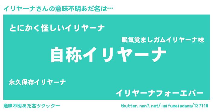 | 男性向けラノベタイトル風あだ名 | 『Re:イリヤーナから始める異世界生活』 |