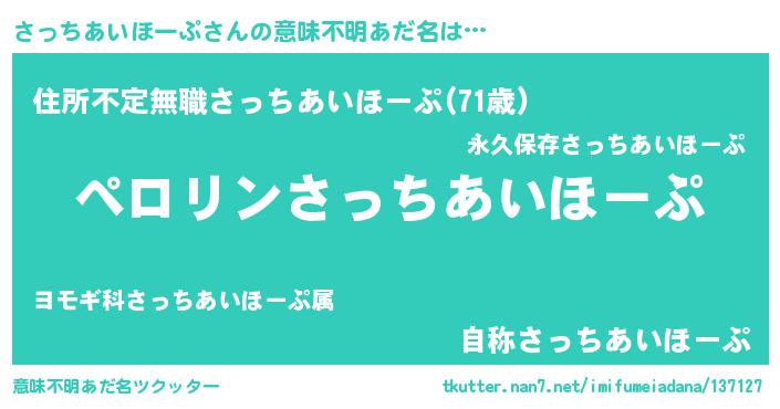 | 男性向けラノベタイトル風あだ名 | 『サッチアイホープアートオンライン』 |
