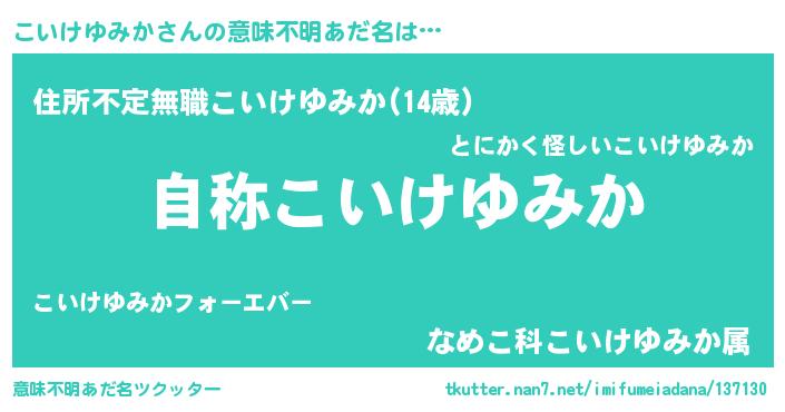 | 欧米人風あだ名 | 『こいけゆみか・ステッグマイヤー』 |