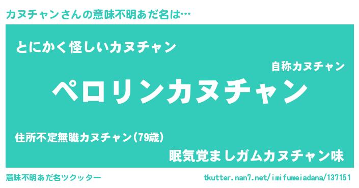 | ヘコむあだ名 | 『カヌふぇ~』『カヌっちょ』 |