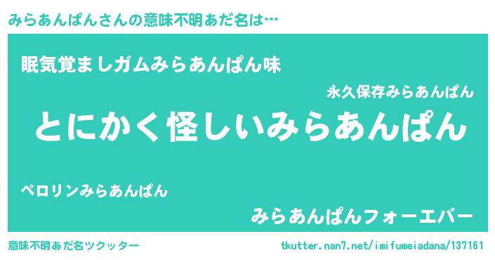 | ポケモン風あだ名 | 『ヒミラアンパン』『ミラゴンZ』 |