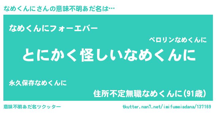 | 欧米人風あだ名 | 『なめくんに・ステッグマイヤー』 |