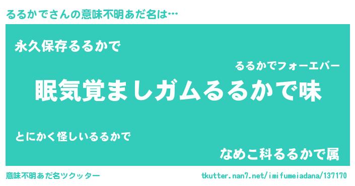 | ヘコむあだ名 | 『るるかで(小並感)』『豆乳』 |