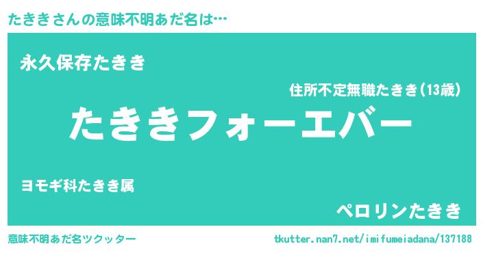 | ポケモン風あだ名 | 『メロタッキ』『タキキダネ』 |