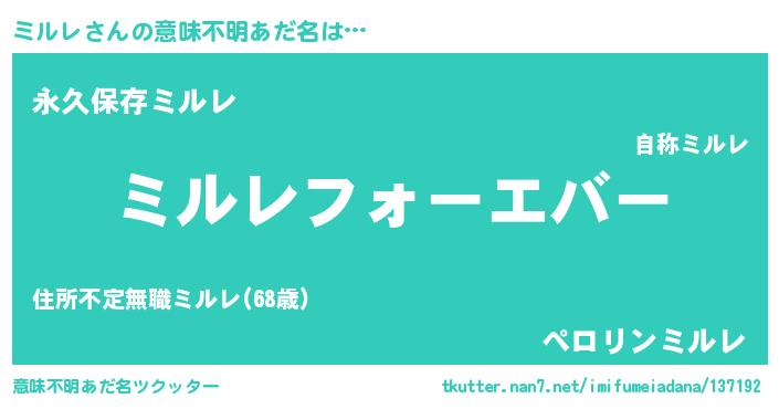 | ポケモン風あだ名 | 『ミルゴンZ』『ミルレダネ』 |