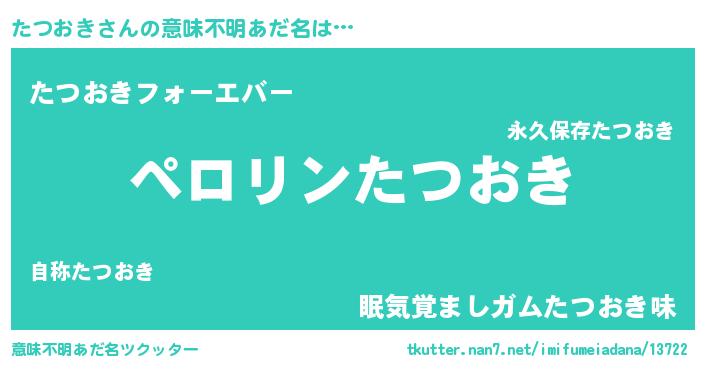 | 男性向けラノベタイトル風あだ名 | 『タツオキアートオンライン』 |