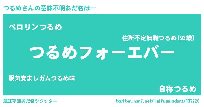 | ファンタジー風あだ名 | 『エターナルツルメー』『ツルフェル』 |