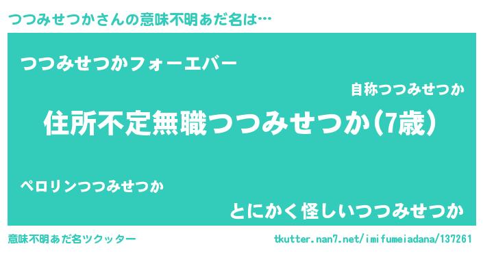| 欧米人風あだ名 | 『つつみせつか・ステッグマイヤー』 |