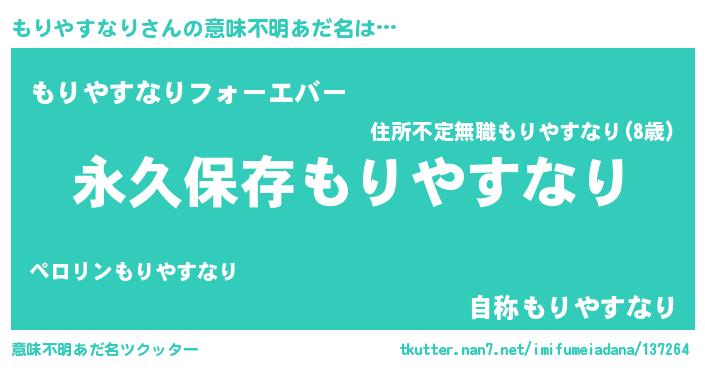 | 男性向けラノベタイトル風あだ名 | 『もりやすなりに滅ぼされるだけの簡単なお仕事です』 |